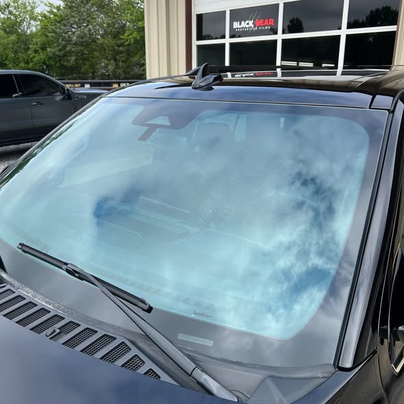 The windshield tint is subtle to the eye but very effective. From inside, the sky and road look the same. From outside, there is just a faint hint of film that gives the windshield a slightly deeper tone without looking modified.